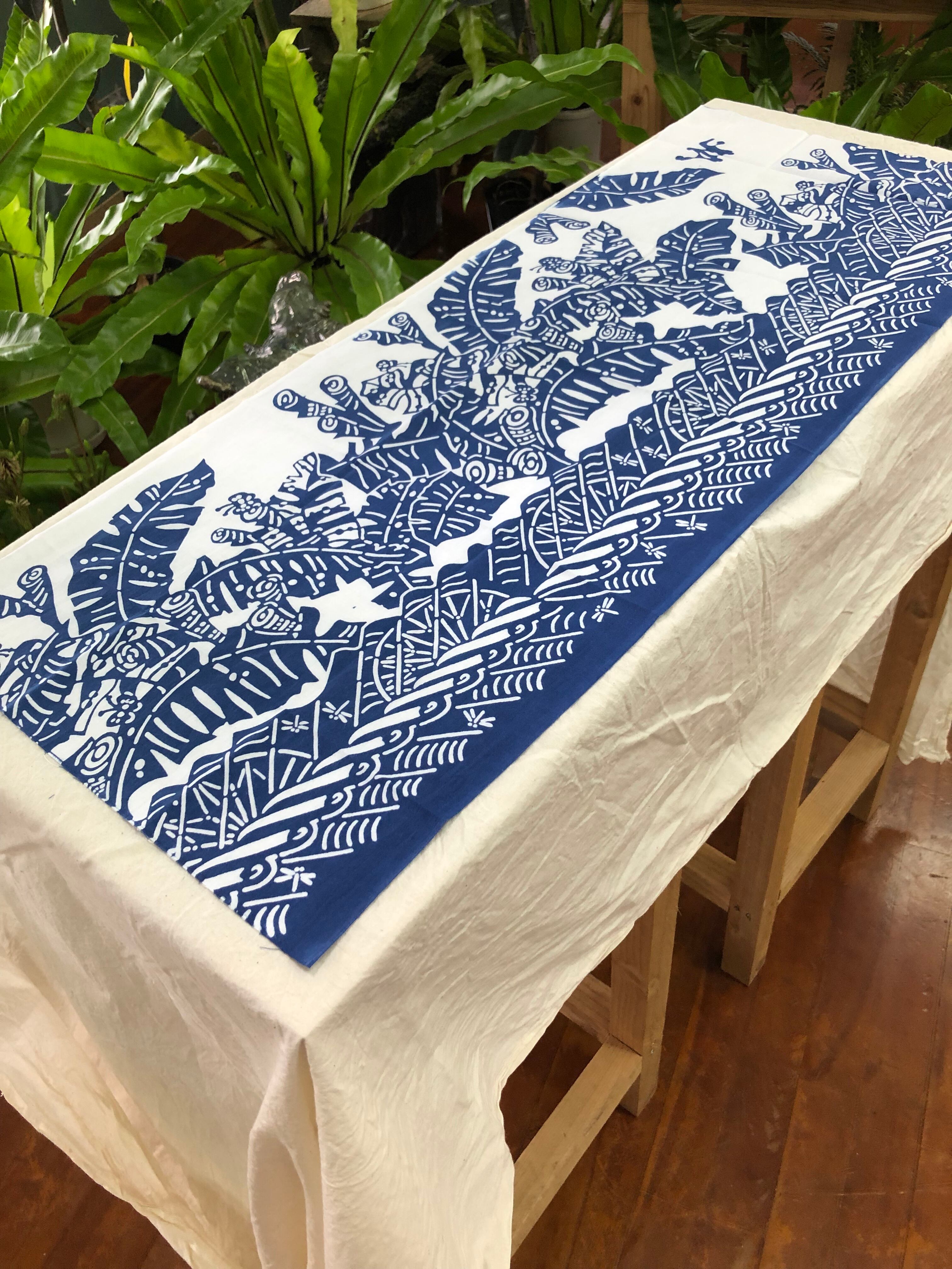 紅型工房ひがしやさんの型紙デザインで、やんばるアートフェスティバルのオリジナルてぬぐいを作りました。